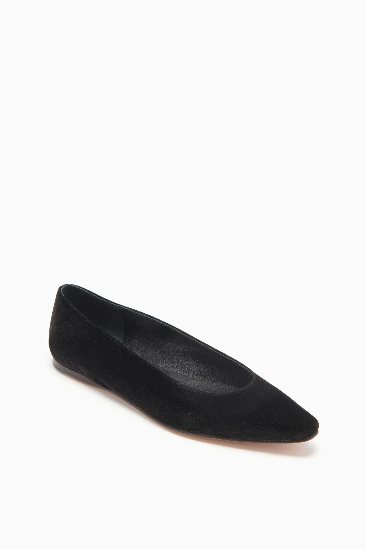 The Arlo Ballet Flat is a timeless silhouette you can easily pair with dresses and denim. Crafted from smooth black velvet, these minimalist flats have a sleek almond toe, are lined in leather, and rest on a slight heel.