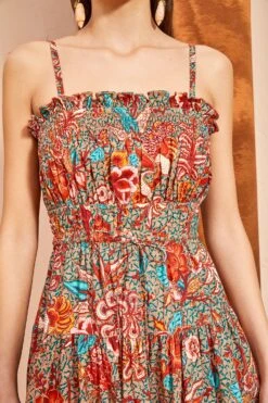 The Lina Coverup is a breezy silhouette made from a lightweight cotton blend. Crafted in this season’s stunning blue, yellow and navy prismatic print, this coverup features a ruffle flutter sleeve and a split neckline. Finished with a braided tassel tie detailing. Pairs perfectly with any of our swim in Constellation.