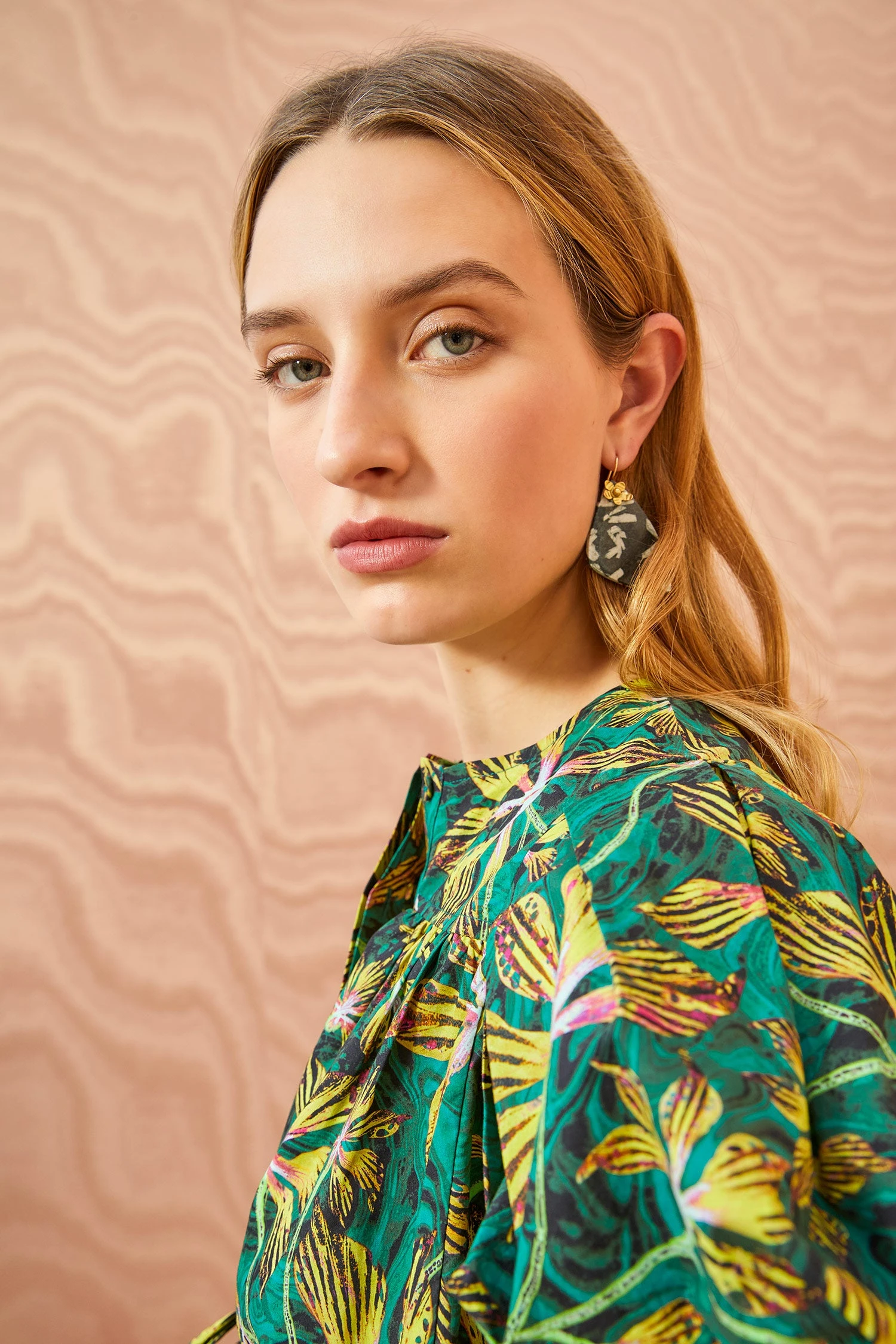 Style with our Lou Jean and Hammered Chain Organic Stone Earring to complete the look.Â