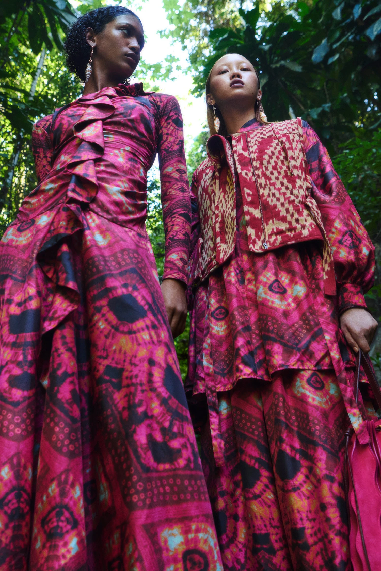 The Othella Dress, as seen in Look 11 of our Pre-Fall ’23 Lookbook, is made from gorgeous silk twill that has been printed in a vibrant diamond shibori pattern. The bodice features a flattering ruched texture created by a center-seam with a cascading ruffle. This dark pink midi dress has a dramatic slit in the front of the skirt and is finished with a side-seam zip closure.